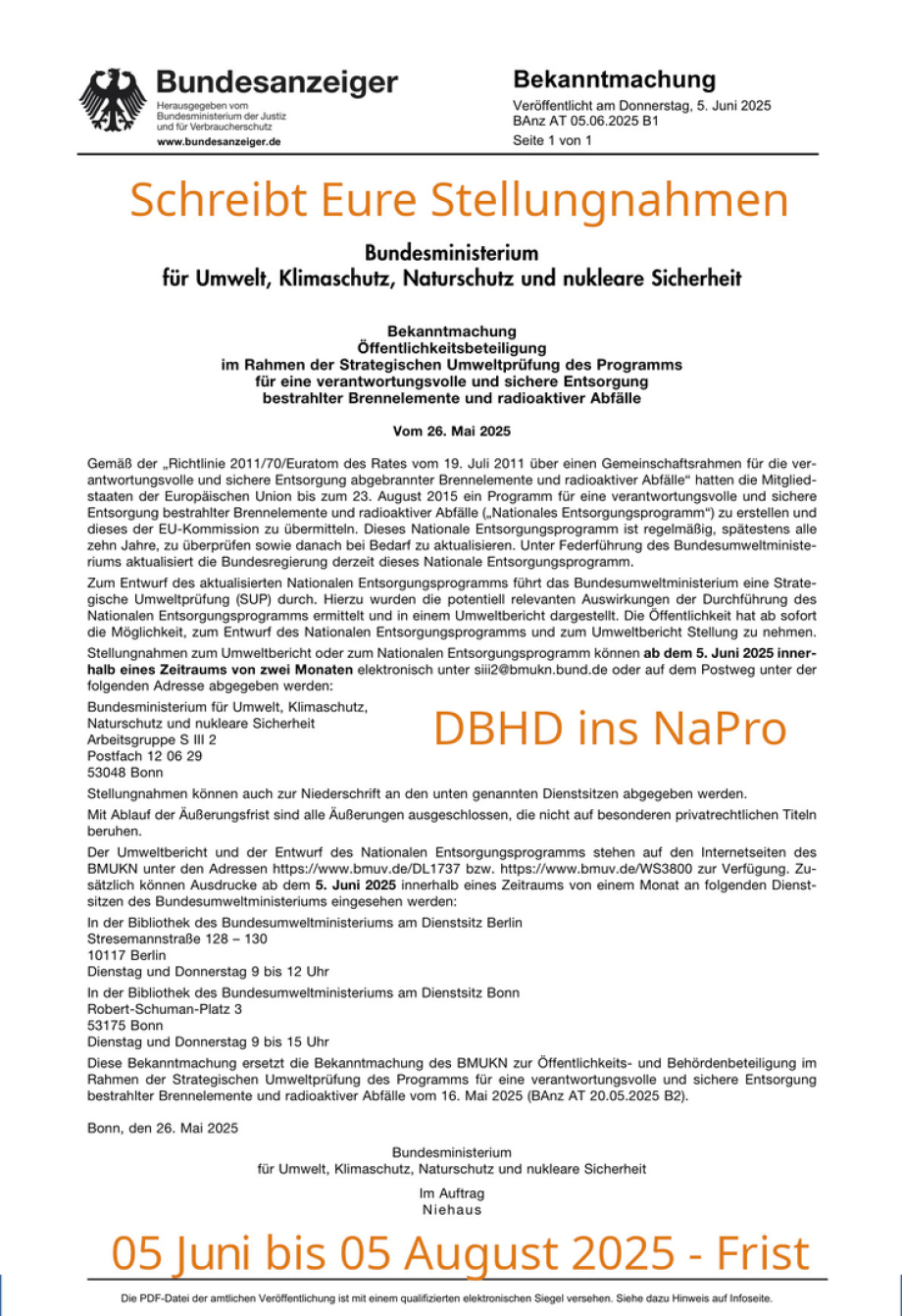Nationales Nukleares Entsorgungs-Programm BRD für eine verantwortungsvolle und sichere DBHD Endlagerung bestrahlter Brennelemente und radioaktiver Abfälle in Kooperation mit BMUKN - NaPro DE - September 2025