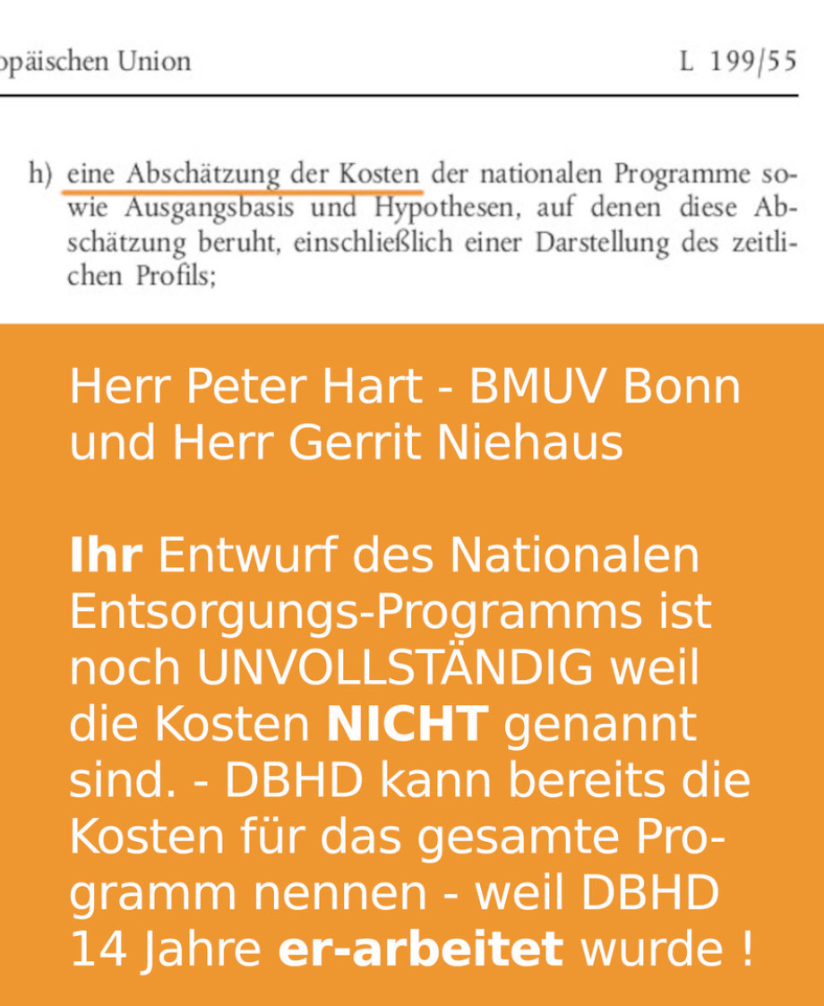 >>> DBHD kann die im EU Gesetz geforderte "Abschätzung der Kosten" nachgewiesen