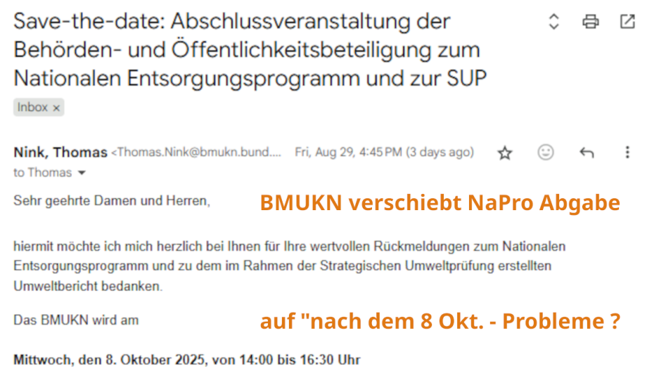 Nink, Thomas <Thomas.Nink@bmukn.bund.de> | Fri, Aug 29, 2025 at 4:45 PM | |