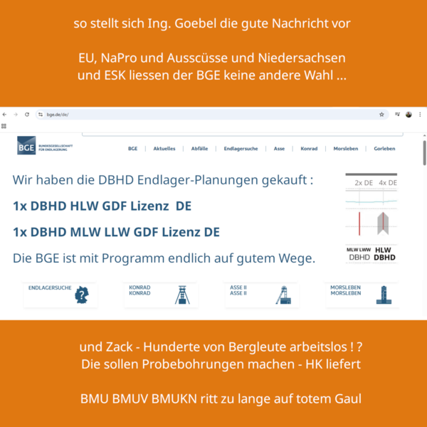 Ing. Goebel im Bürgergeld weiterhin der Top Endlager-Planer. Aber
