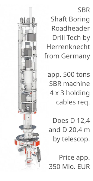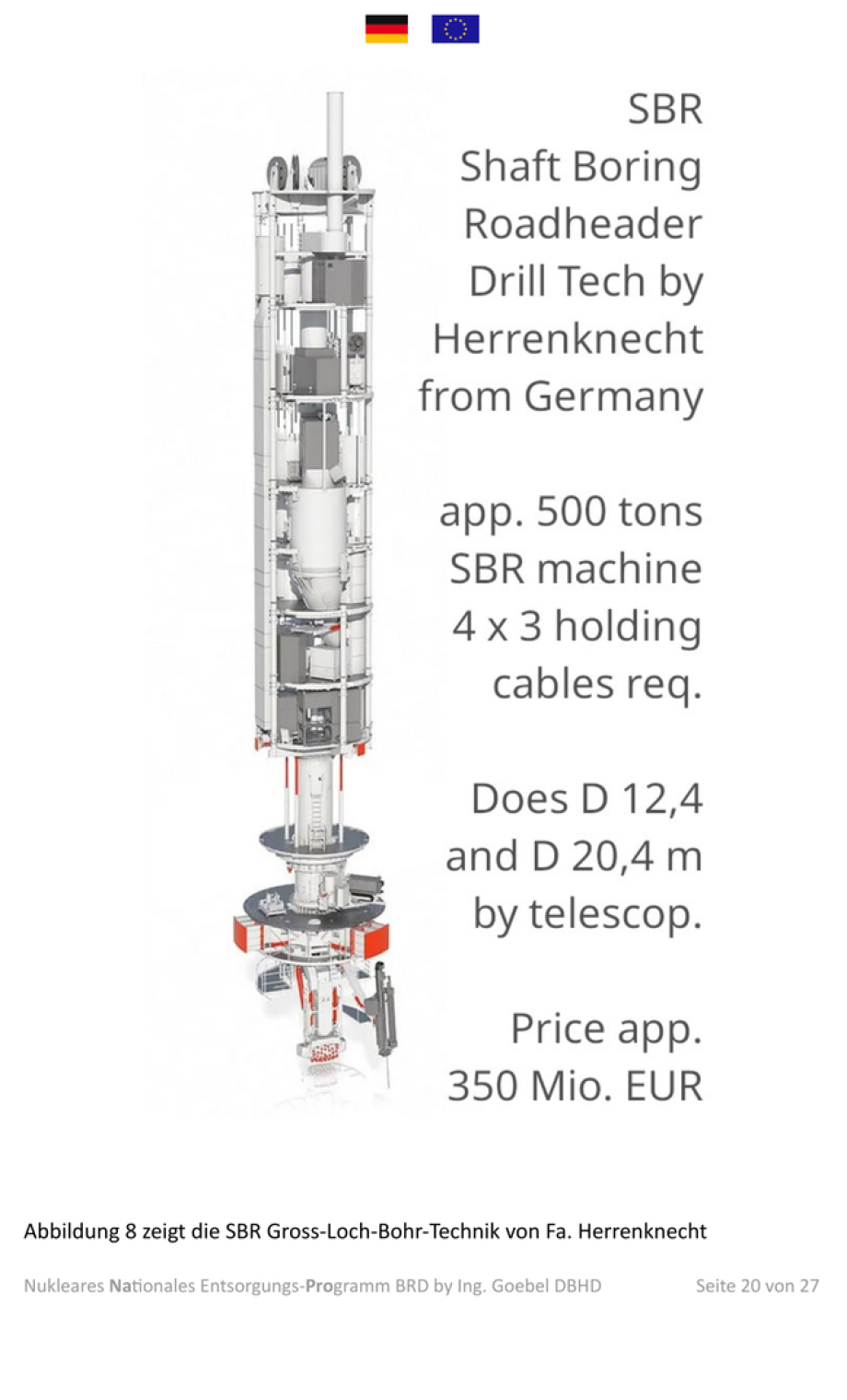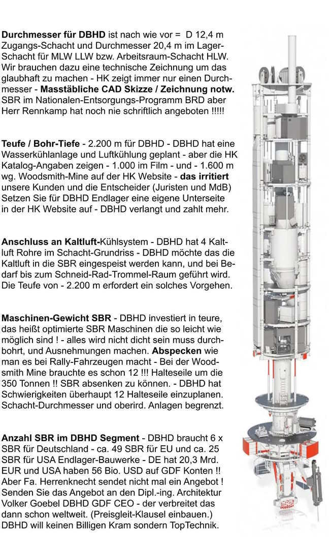 Die SBR Bohrtechnick wird mittlerweile Standart-Mässig angeboten für D = 12 Meter, - die aber durch den schon immer vorhandenen Teleskop-Arm mit Wühl-Schneid-Rad eben auch D = 20 Meter kann ! - Sogar D 22 Meter wären möglich - falls das jemand will. - Die SBR Maschine kann mittlerweile also exakt was DBHD 2.0.0 braucht !!!