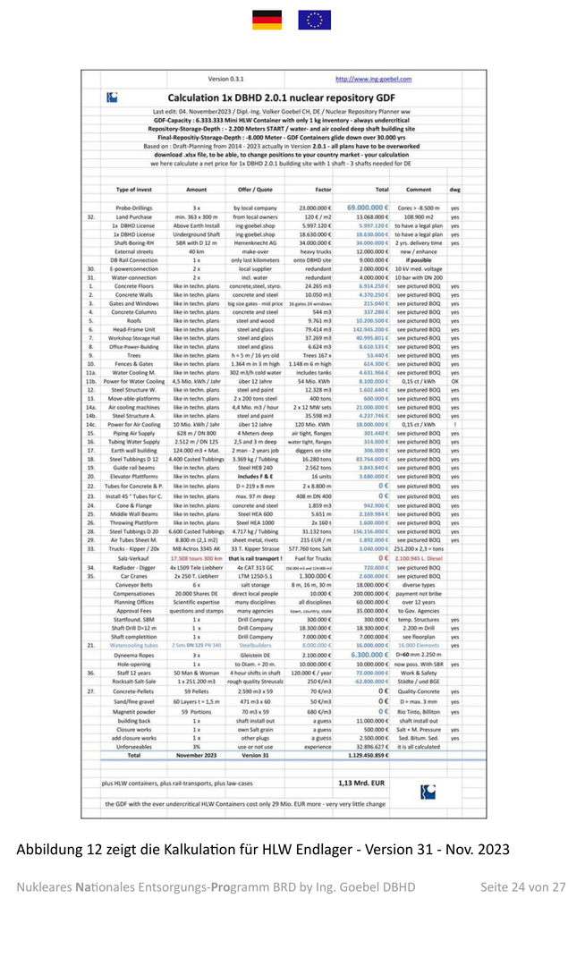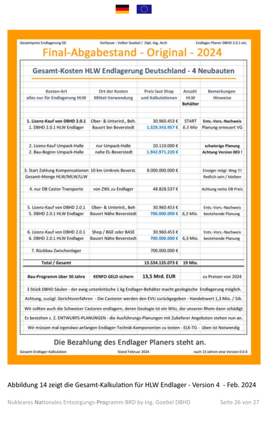 >>> Das ist eine Kalkulation für DBHD 2.0.1 Endlager