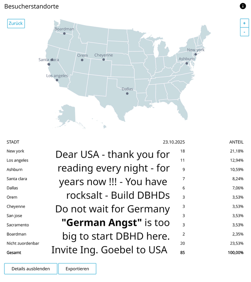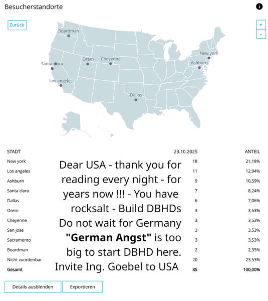 >>> Dear US friends - you are on DBHD GDF websites every day - you have the deep salt geology in the south - and - 56 Bio USD on DOE GDF accounts but you are sooo many - we know your pain ! -