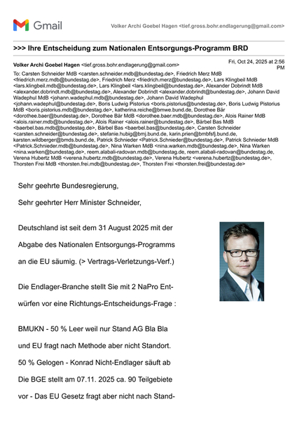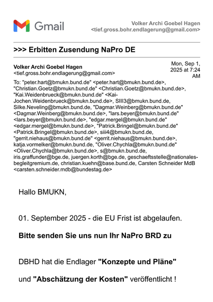 | Nink, Thomas <Thomas.Nink@bmukn.bund.de> | Fri, Aug 29, 2025 at 4:45 PM | |