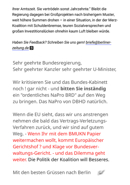 15.09.2025 - die zahlreichen Stellungnahmen zum 50 % Leeren und 50 % Gelogenem NaPro BRD
