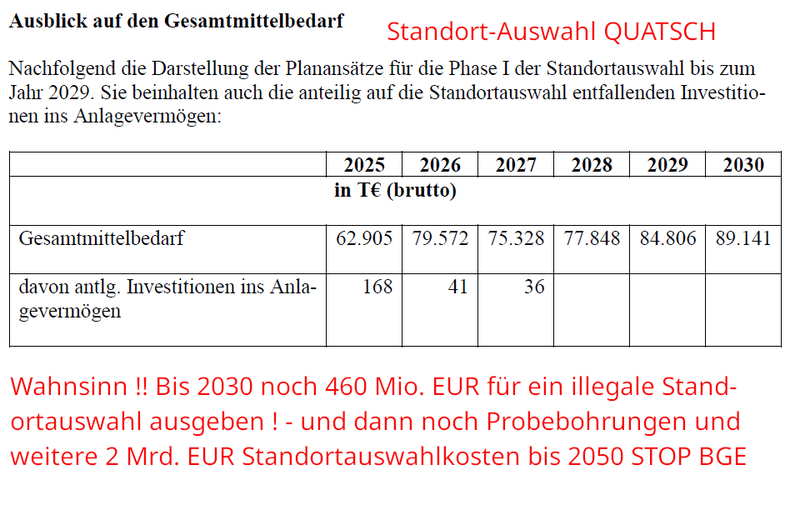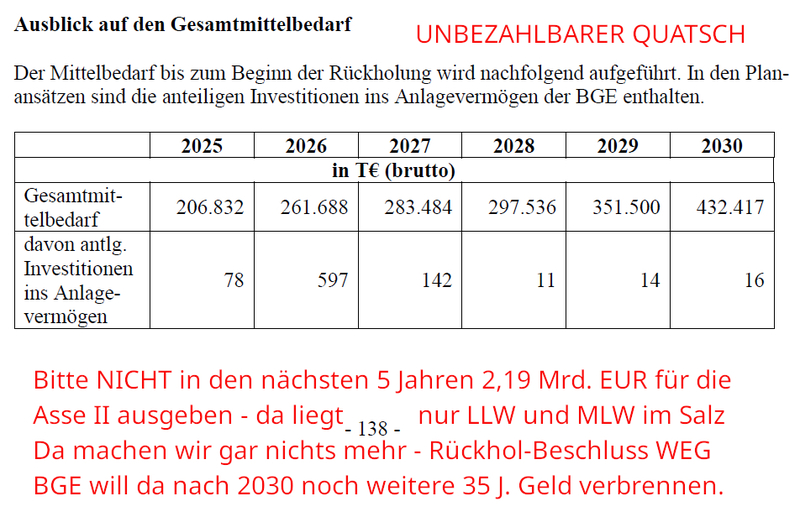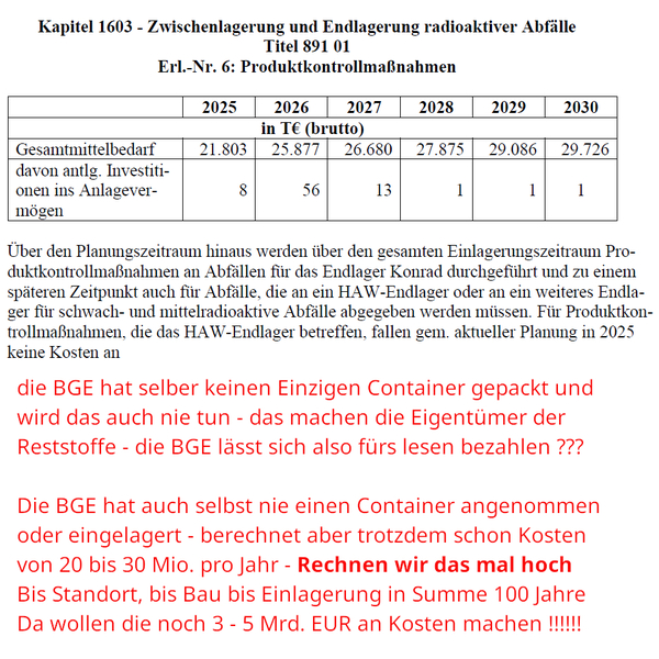 An die 100 J. BGE und den 80 Mrd. Invest in das nasse Nicht-Endlager
