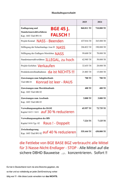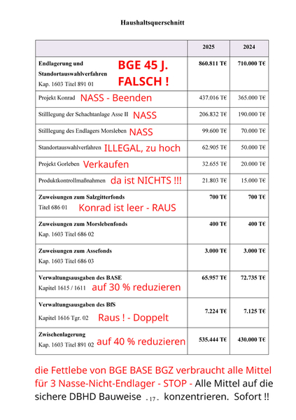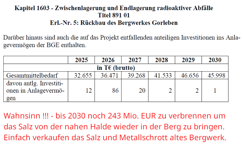 107 Mrd. EUR mehr für ein weiteres nasses BMUKN, BGR, BGE NICHT-Endlager.