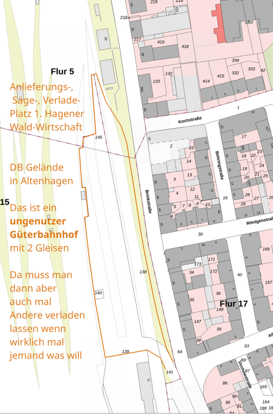 Es ist leider unmöglich eine städtische Fläche am Gleis zu finden, weil