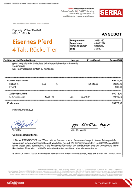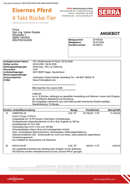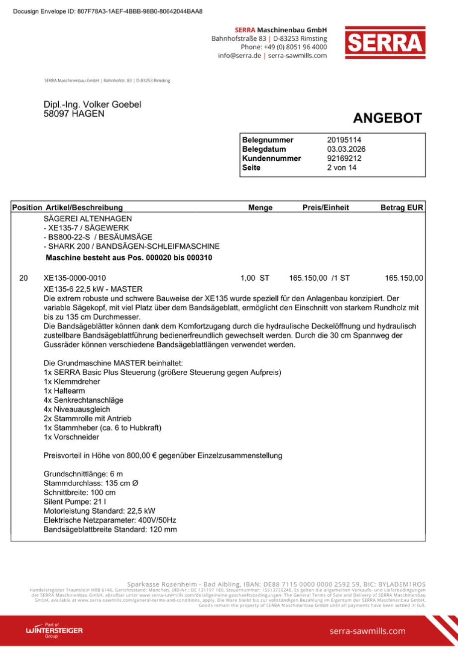 BRAVO - Das Angebot für die beiden Sägewerke von Fa. Serra ist da :