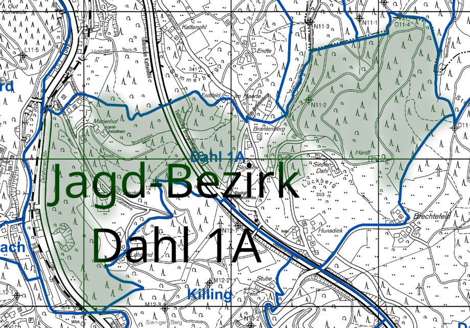 >>> Der Jagd-Bezirk "Hagen-Dahl 1B" - Wald und Jagt gehören räumlich eng zusammen.