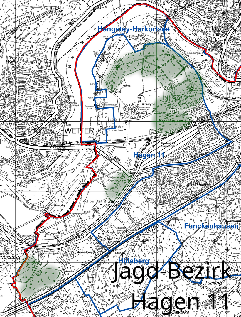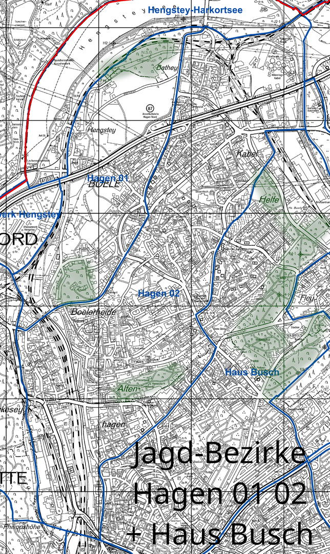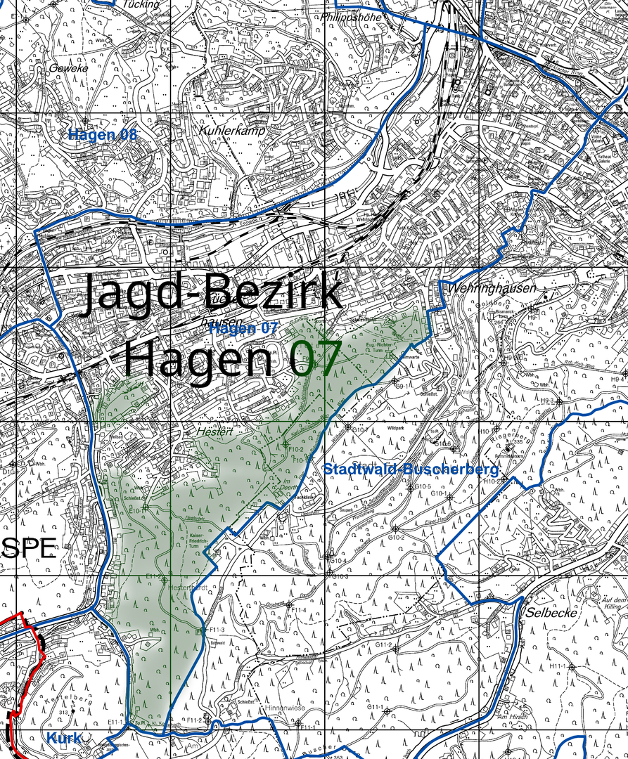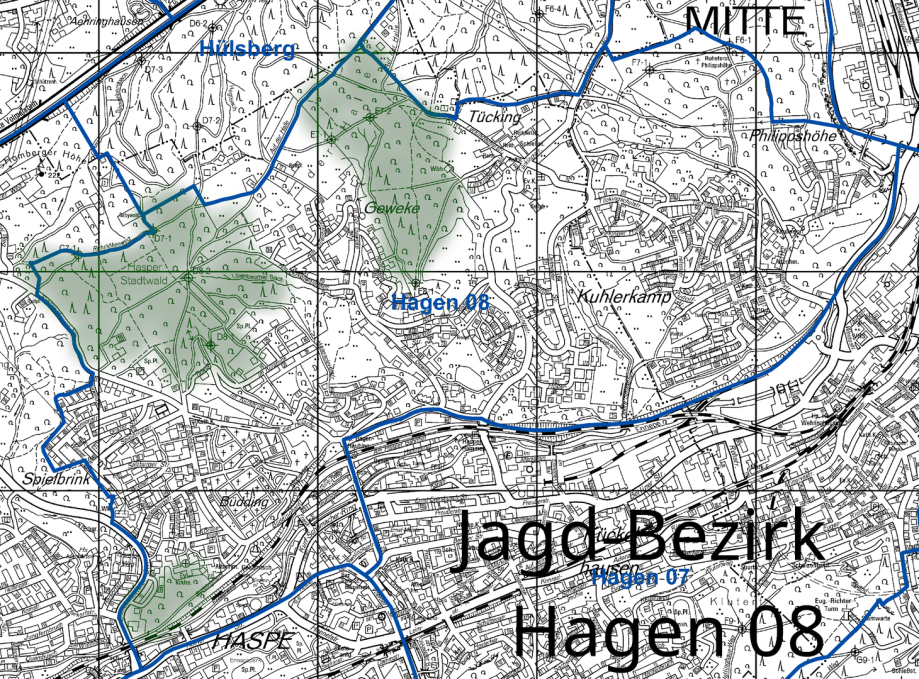 >>> Der Jagd-Bezirk "Hagen 04" - Wald und Jagt gehören eng zusammen. In meiner Lebenszeit sind das Lennetal, Fley und Halden baulich in der Fläche angewachsen.