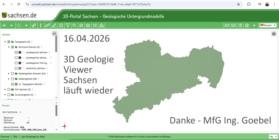 Der 3D Geologie Daten Viewer von Sachsen läuft wieder.