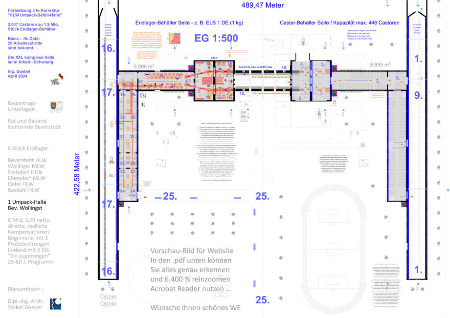 | Einlager-Bereich Start | H 250 m x B 500 m x L 25.000 m | H 800 m x D 500 m |