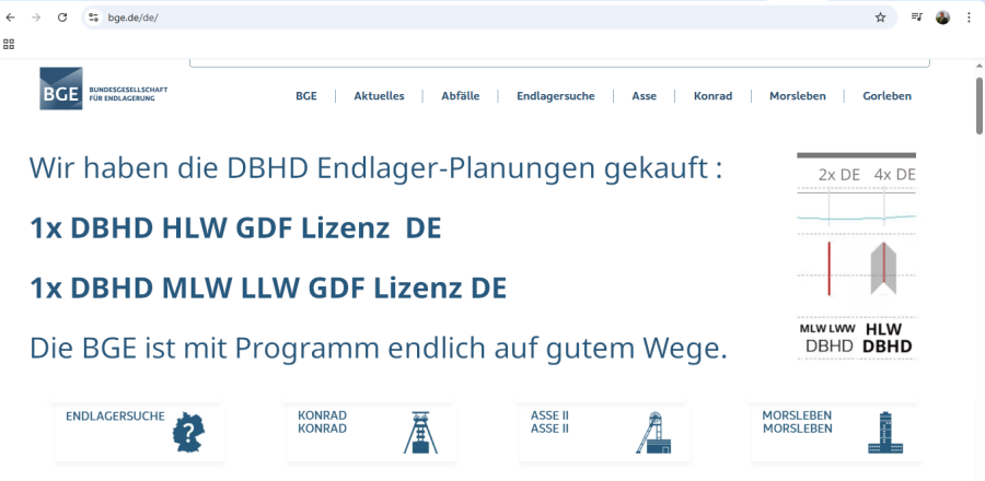 DBE BGE legt "Konzept und Pläne ?" für 1 Nicht-Endlager in Bröckelton