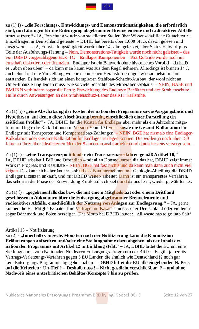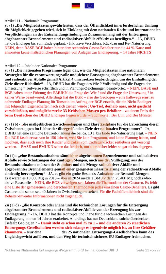 Das BMUKN verschweigt Artikel 12 des EU Gesetzes 2011/70/Euratom - eine Lüge !