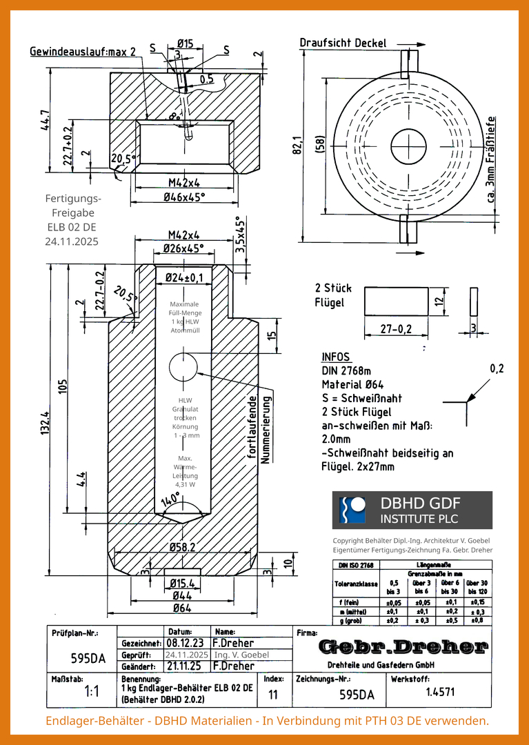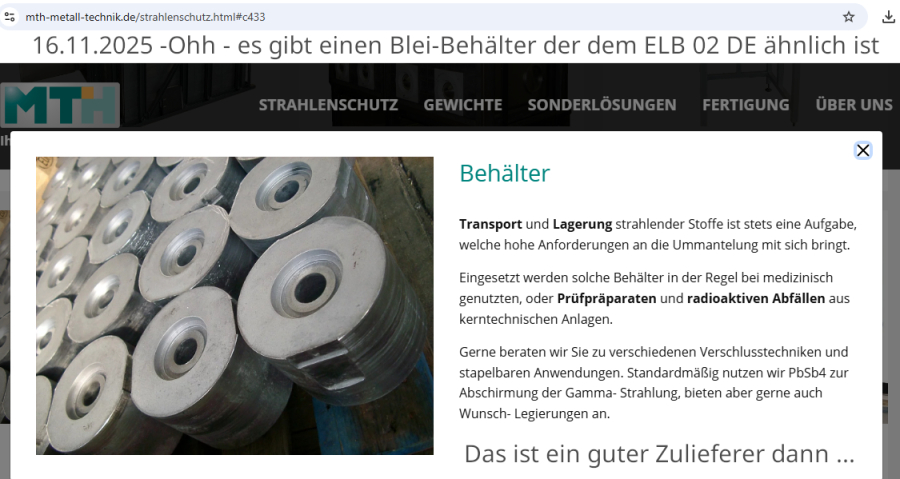 DBHD braucht Mittel um den Endlager-Behälter ELB 01 DE und Strahlenschutz-