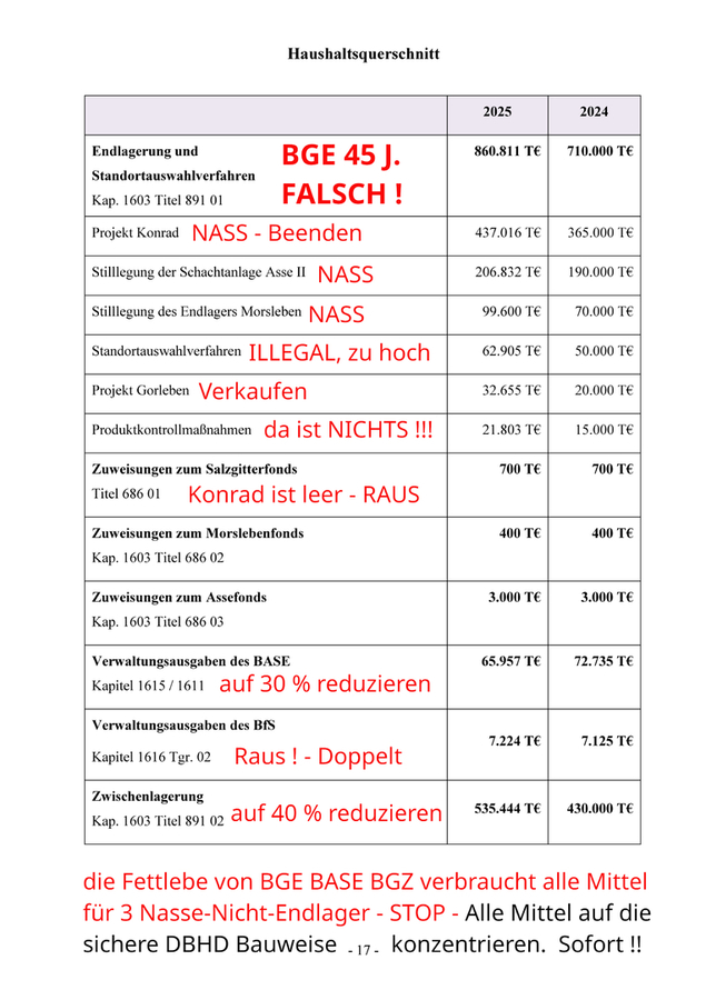 und die Kosten der BMUKN Abteilung S und die Kosten den BASE müssen wir uns auch