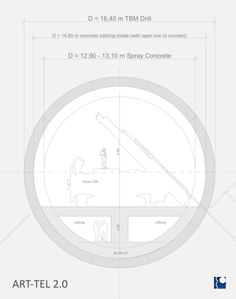 Tunnel und die Abmessungen - Pro Seite ist das ART-TEL schon 26 Kilometer lang