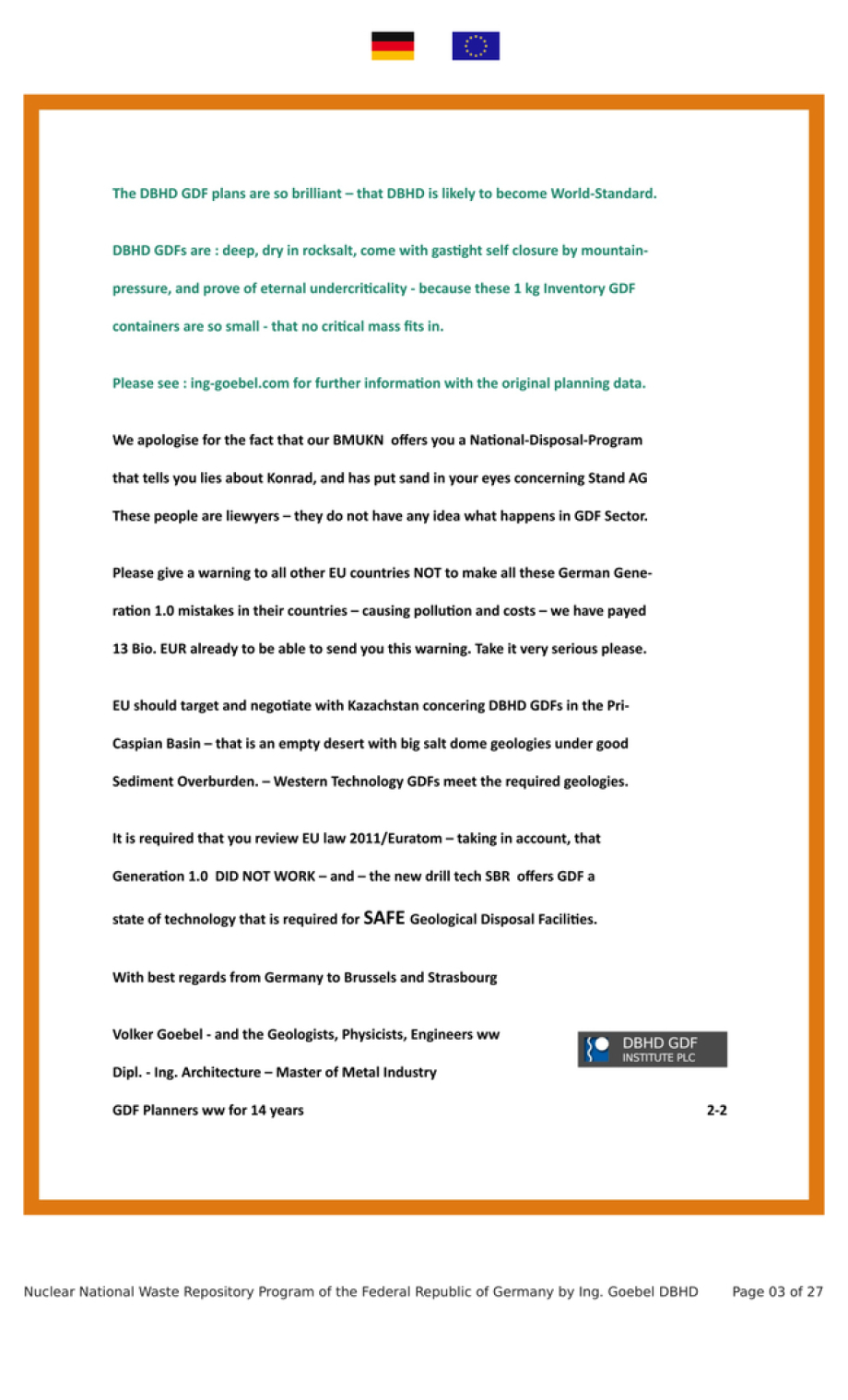 Please invite Ing. Goebel from DBHD GDF asking on behalf of all EU !