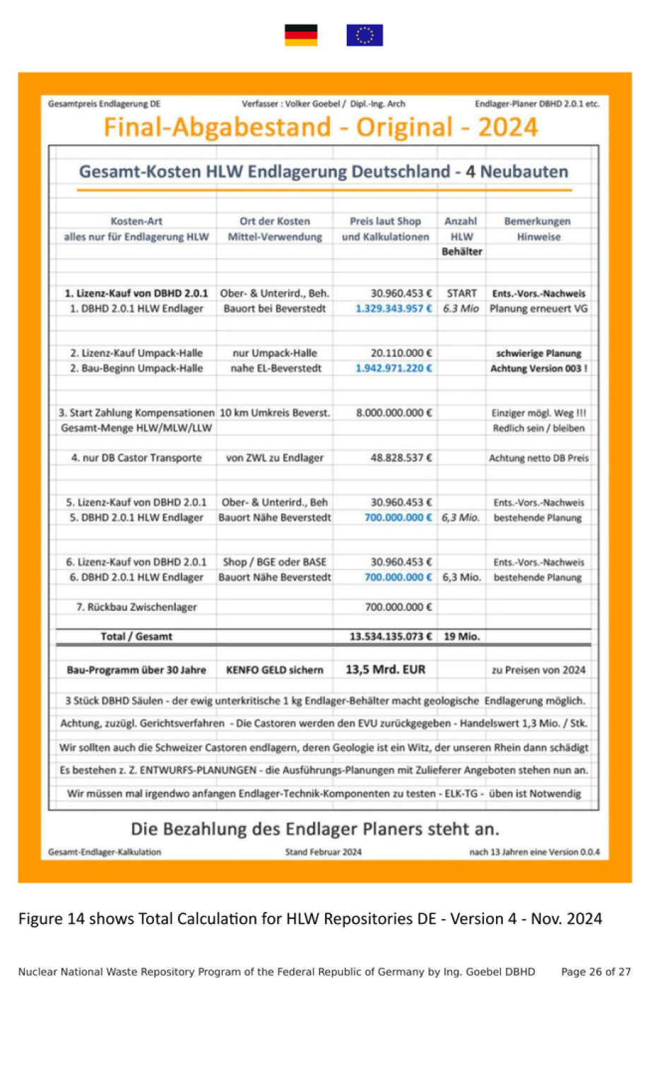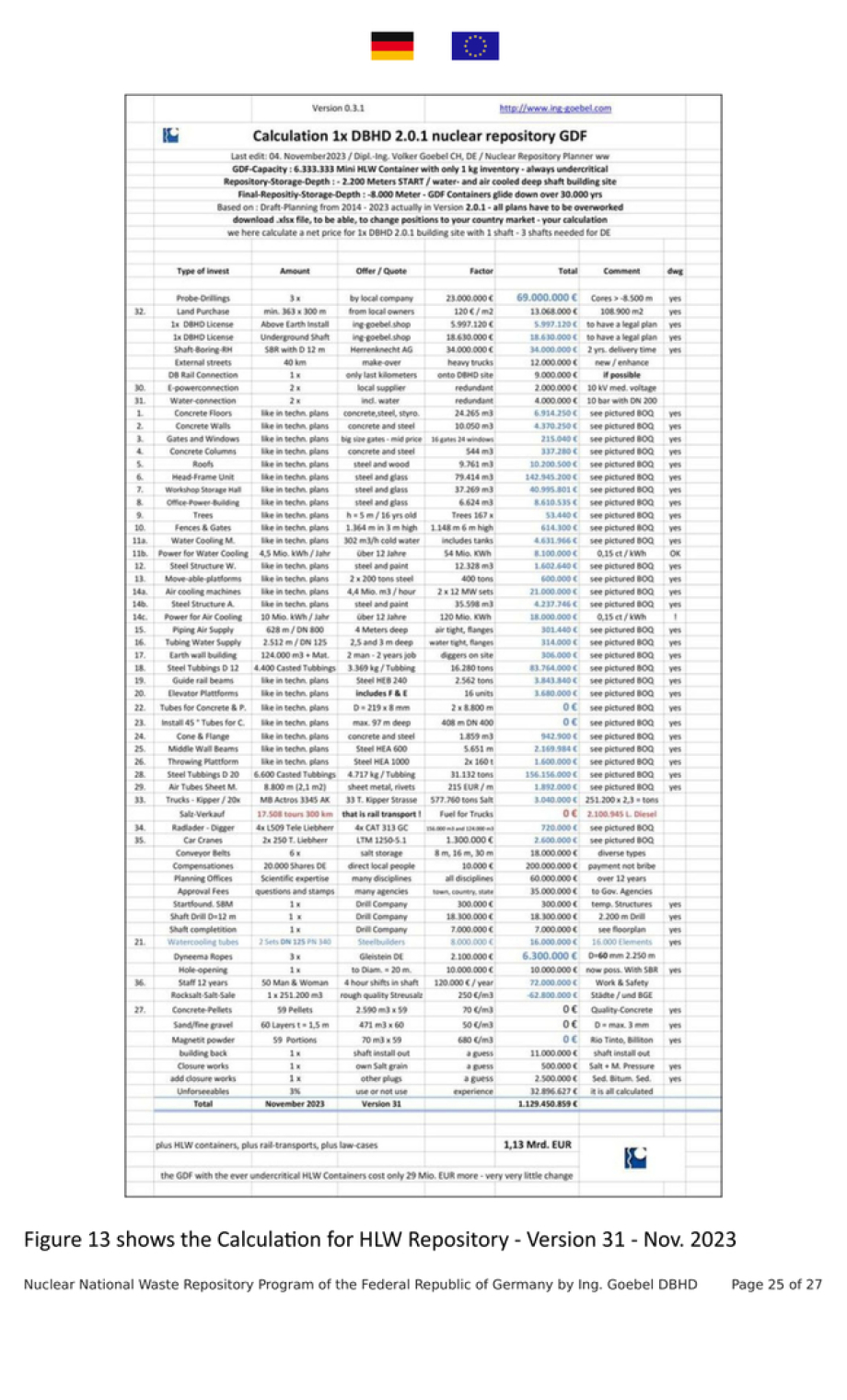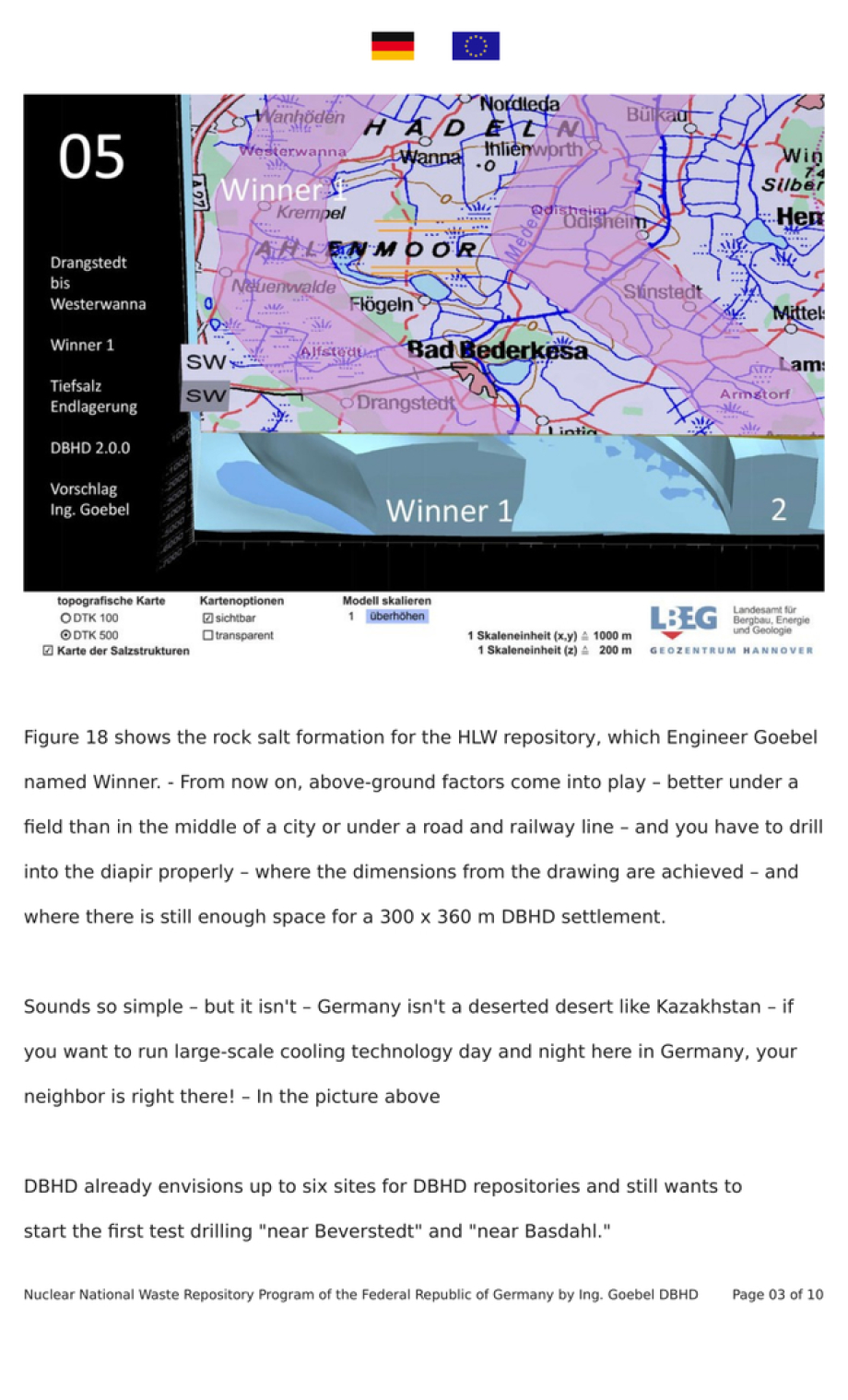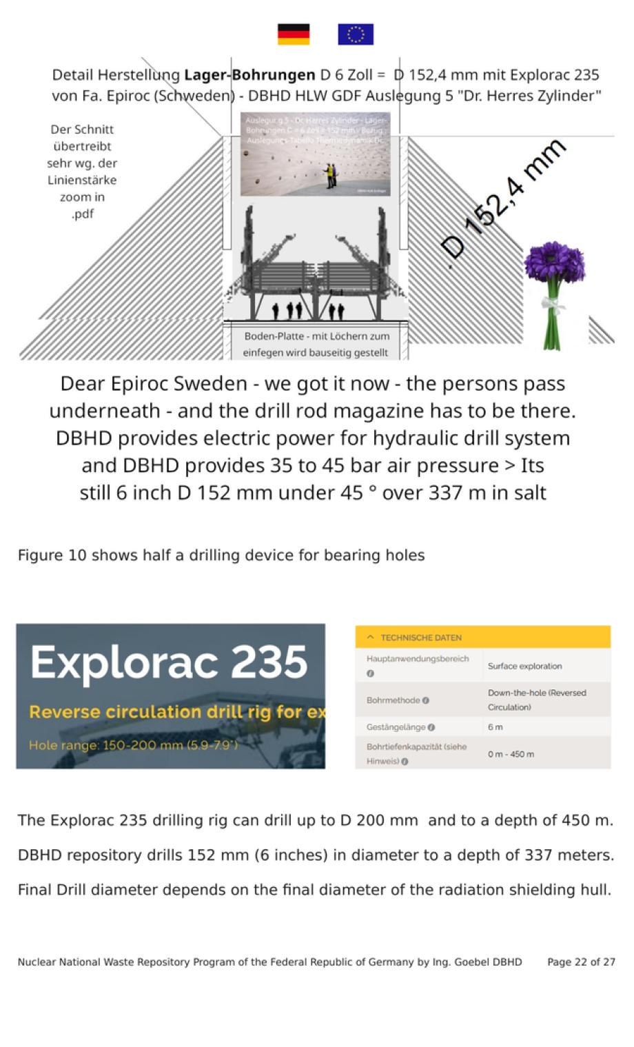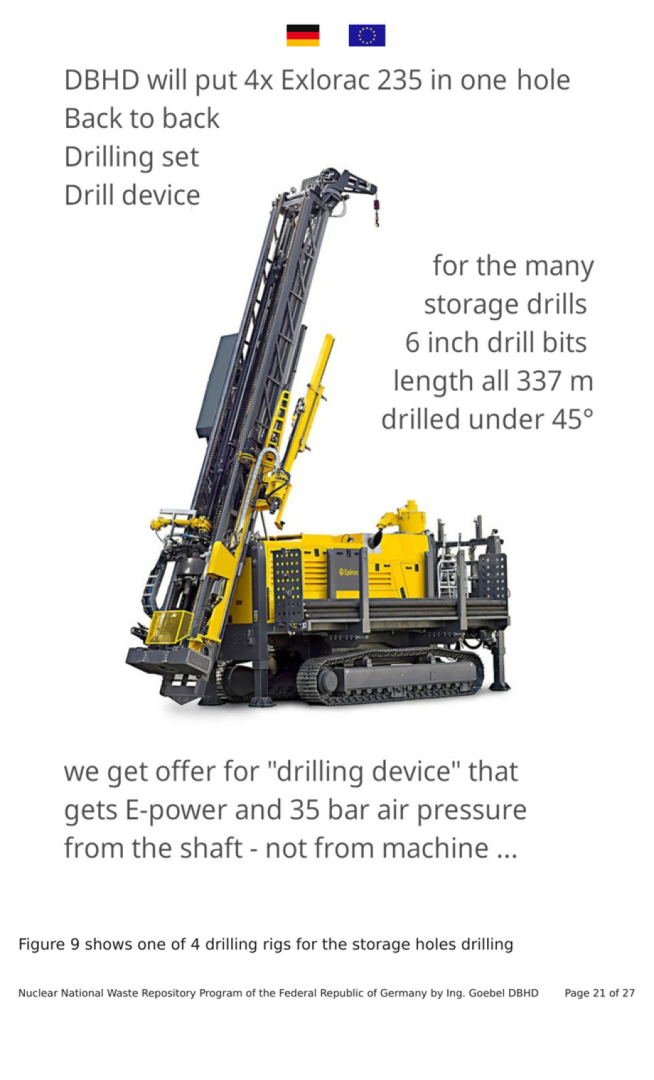to drill 36 holes D 12,4 m to store nuclear EUwaste safely in deep salt.