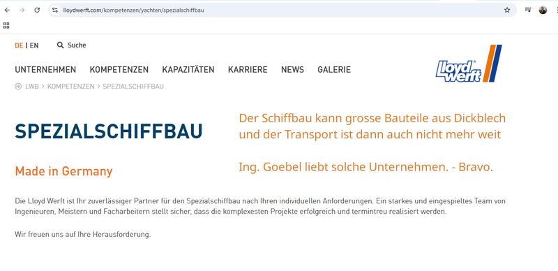 einer örtlichen Schiffswerft für den Dickblechbau zusammen. Moin Lloyd Werft.