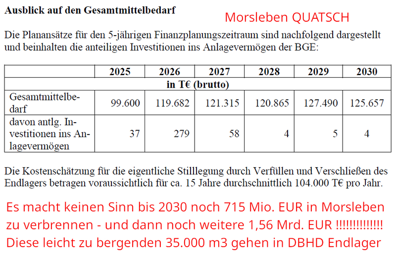 An die 100 J. BGE und den 80 Mrd. Invest in das nasse Nicht-Endlager
