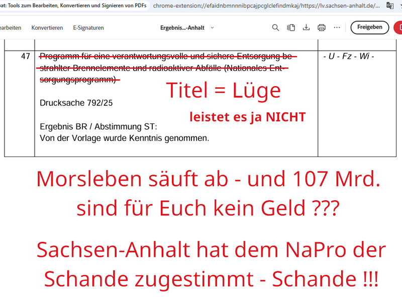 Sachsen-Anhalt stimmte am 30.01.2026 für das NaPro der Schande Drucksache 792/25