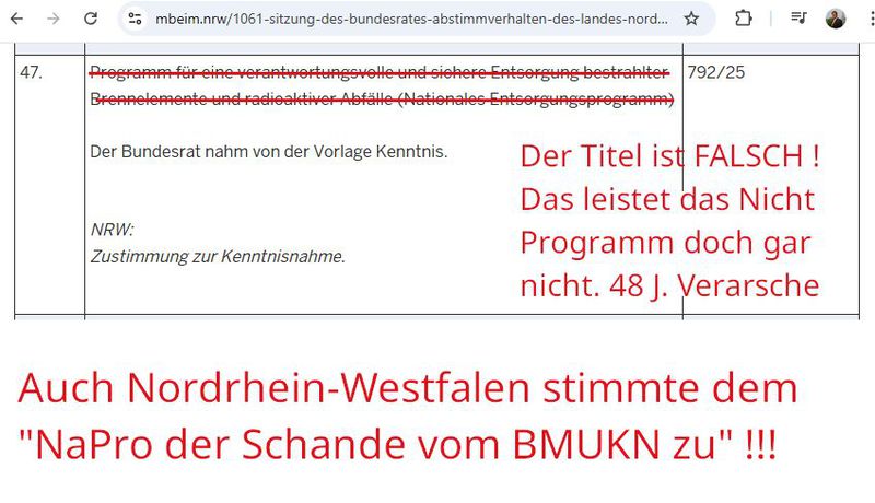 Nordrhein-Westfalen stimmte am 30.01.2026 für das NaPro der Schande Drucksache 792/25
