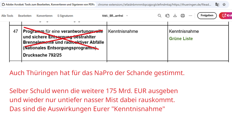 Thüringen stimmte am 30.01.2026 für das NaPro der Schande Drucksache 792/25