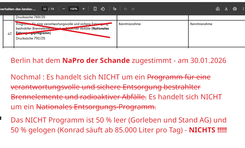 Baden-Württemberg stimmte am 30.01.2026 für das NaPro der Schande Drucksache 792/25 !!!!!