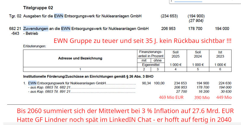 Das 10 J. Nicht-Programm Entsorungs NaPro des BMUKN sieht 100 Jahre und 175 Mrd. EUR