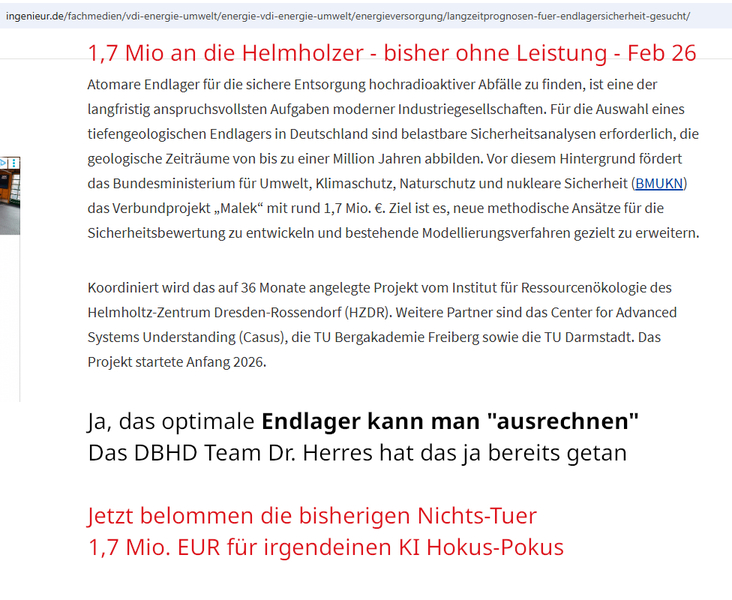 >>> Dear US friends - you are on DBHD GDF websites every day - you have the deep salt geology in the south - and - 56 Bio USD on DOE GDF accounts but you are sooo many - we know your pain ! -