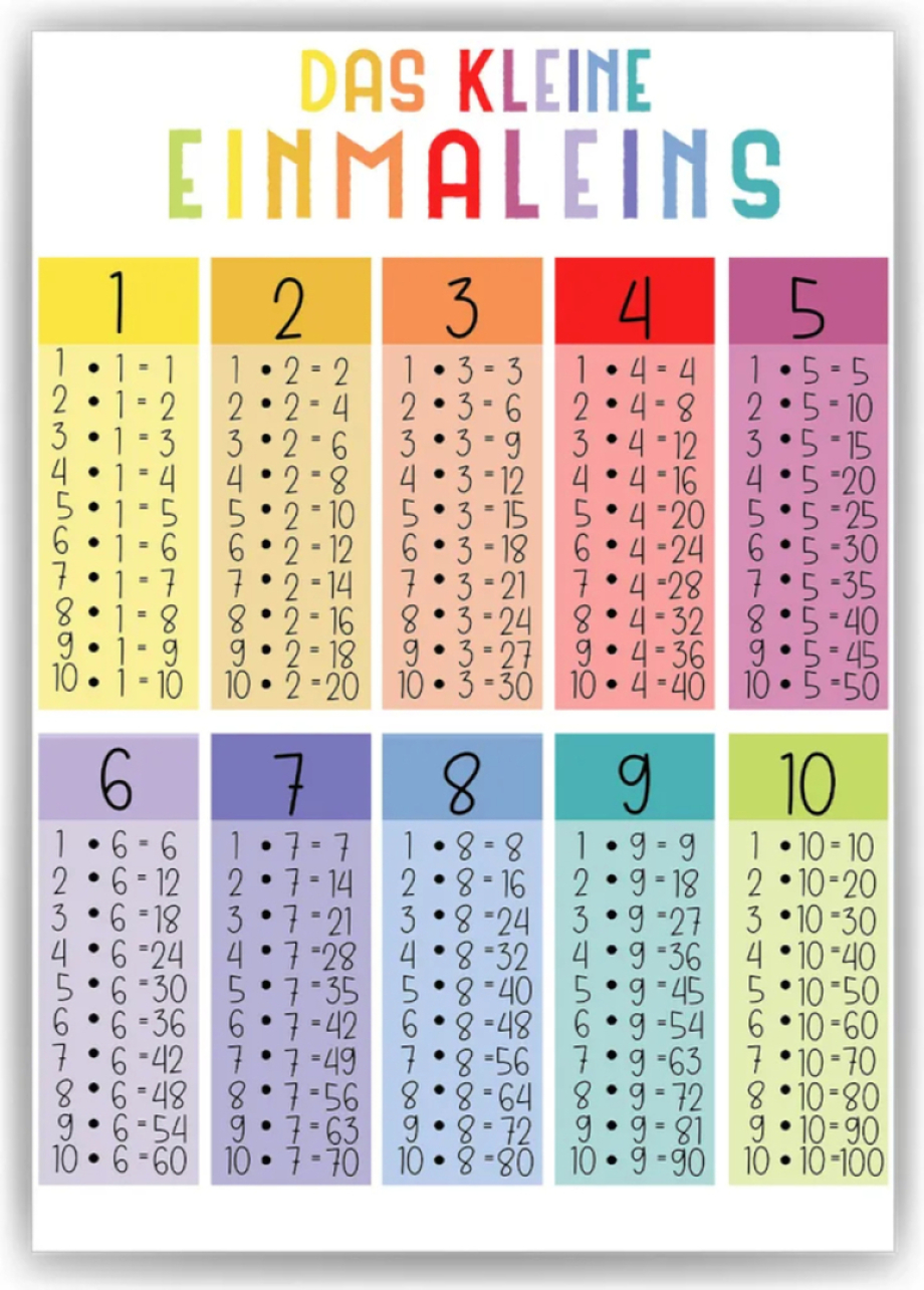 Hier sehen wir 2 Info-Grafiken - das 1x1 Lernen -