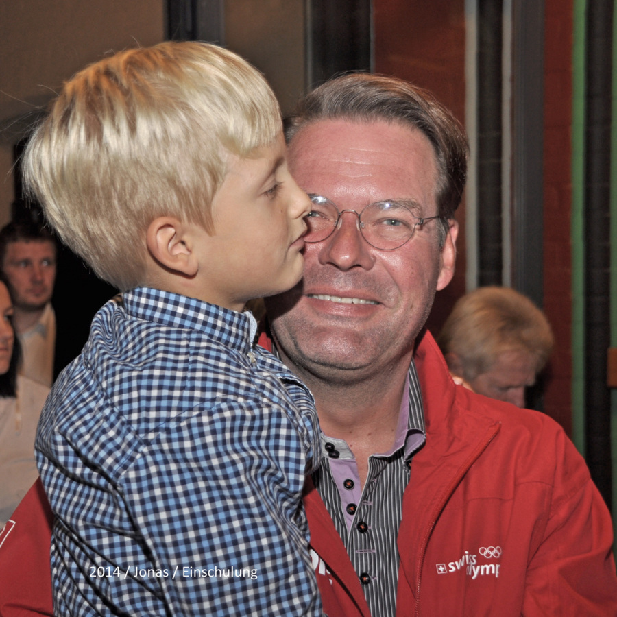Das ist Lehrer Goebel mit Sohn Jonas am Einschulungs-Tag. Jonas wird diesen Monat 13 Jahre alt