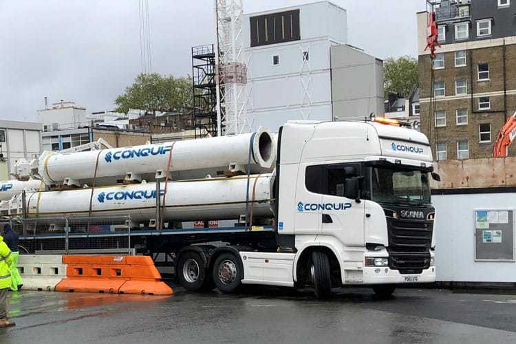 Pile Proping by Conquip UK - Solche Stützen brauchen wir in Hagen um die hohe Stützmauer an der schadhaften Stelle VOR dem Abriss der Hochbrücke Ebene 2 zu sichern - HANGSICHERUNG VOR DEM ABRISS EBENE II - Conquip hat solche 30 m langen Stützen.