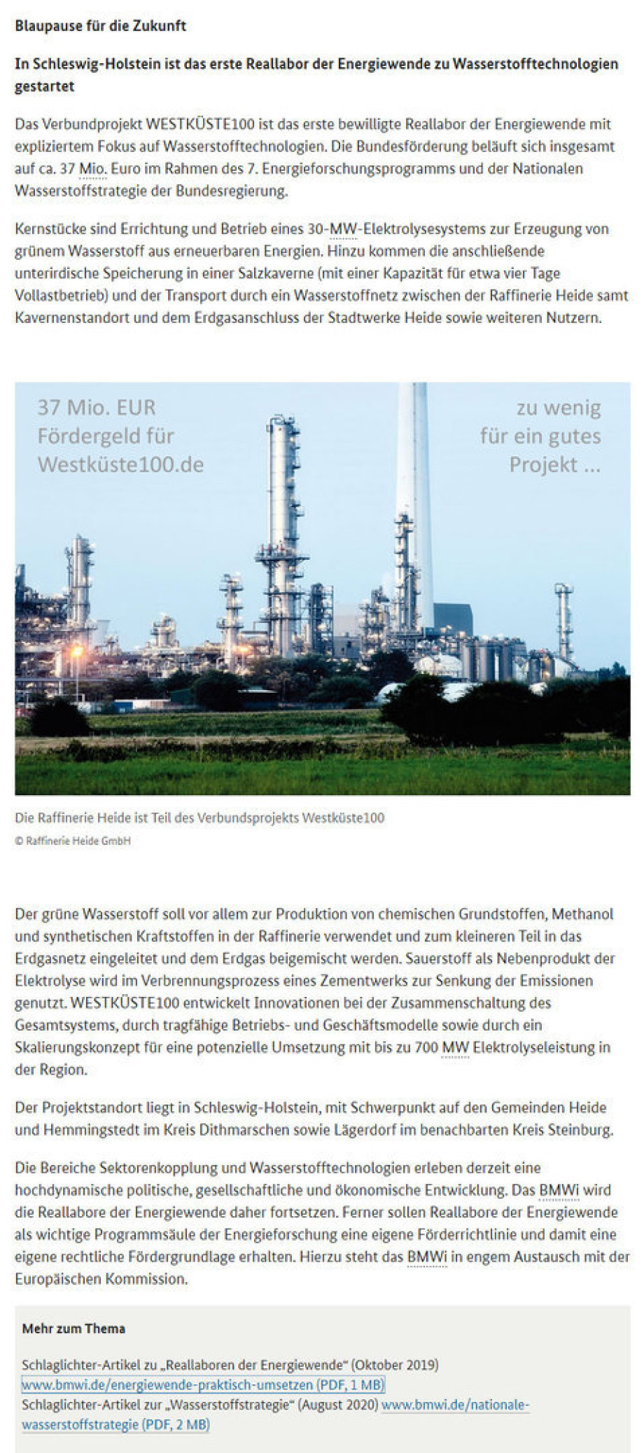 ist für die Entwicklung des H2 Clusters Heide leider nur unvollständig geeignet.