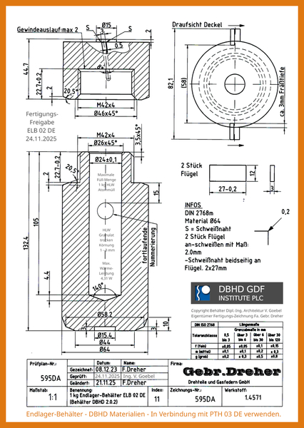 Endlager-Behälter aus Edelstahl 1.4571 - verschweisst (ELB 02 DE)
