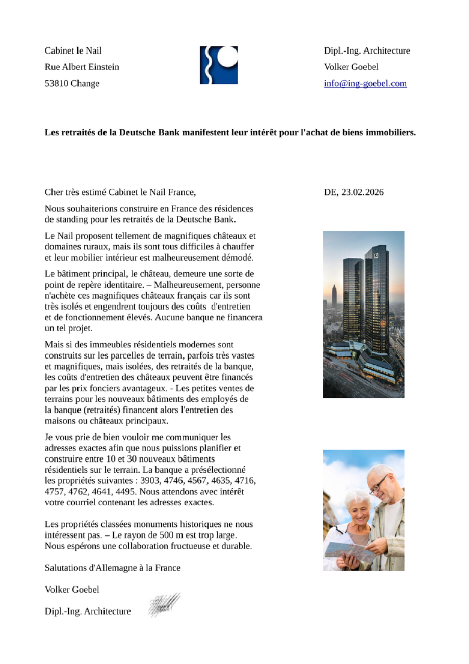 Wir haben erst kürzlich die Adresse der örtlichen Verwaltung erfahren - Erneuter Brief.