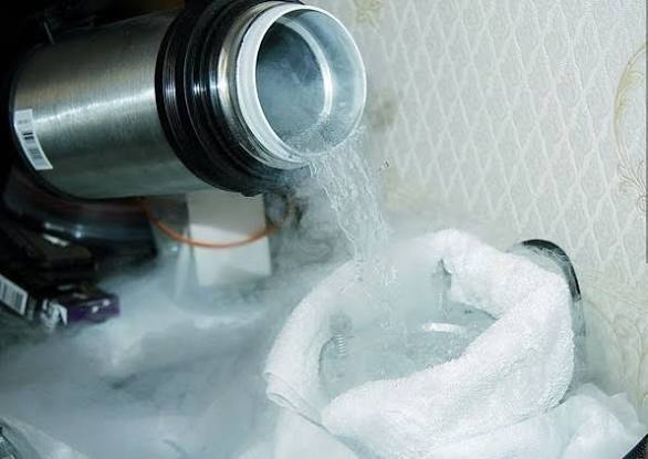 Bergleute stehen in einer Kaltluft-Dusche +10 °C