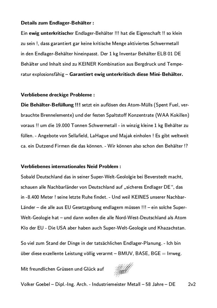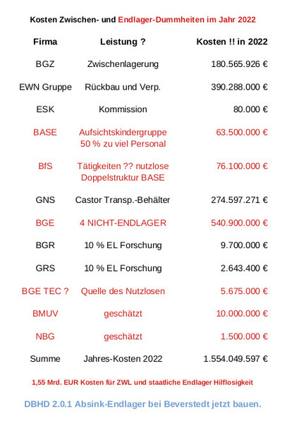 über diese exzellente Leistung völlig verarmt – BMUV, BASE, BGE = Irrweg.