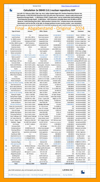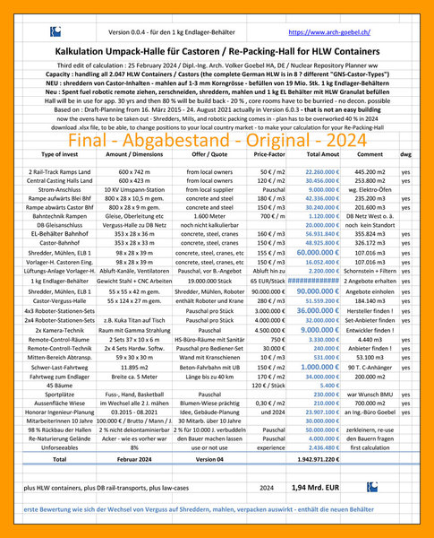 Gesamt Projekt Kalkulation für Endlagerung alle NuklearAbfälle DE liegt