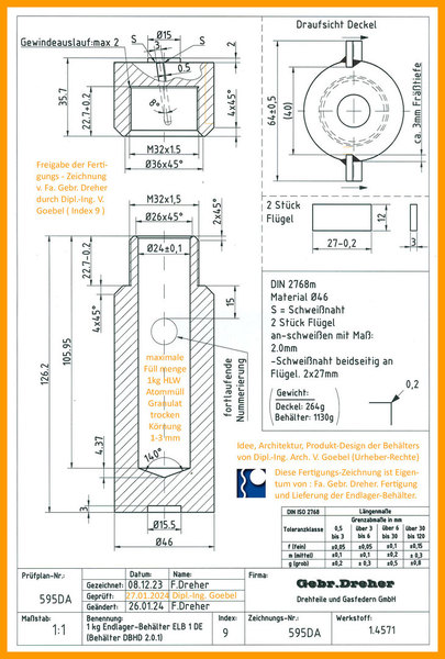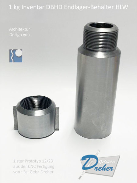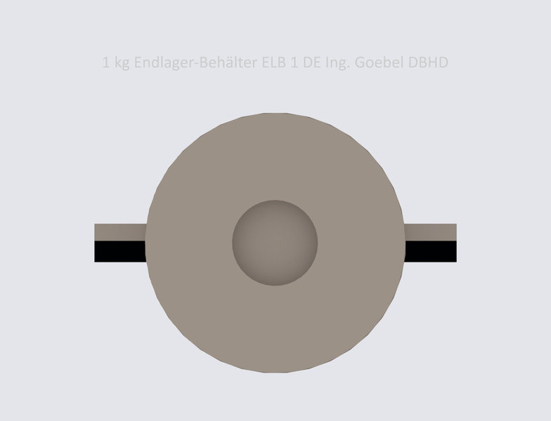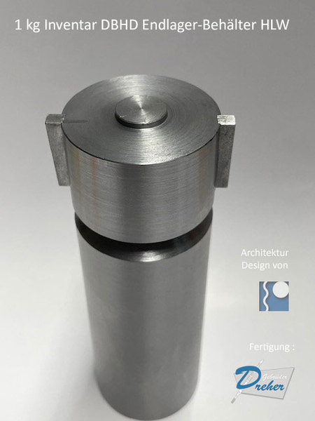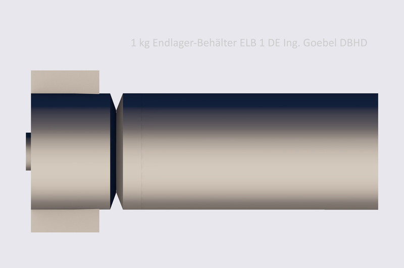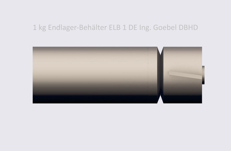 in den Endlager-Behälter hineinpasst. Der 1 kg Inventar Behälter ELB 01 DE