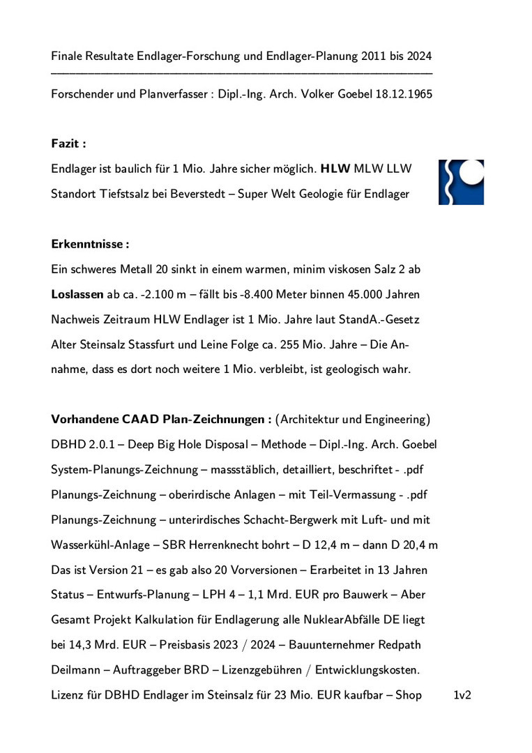 Ing. Goebel hat bereits alle XXL Steinsalzvorkommen inhaltlich für die Endlagerung bewertet.