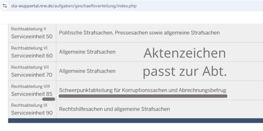 Aber es bleibt dabei - die Korruptions-Staatsanwaltschaft Wuppertal hat ein