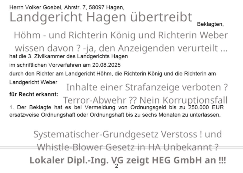 Strafanzeige erfolgte postalisch -Web-öffentlich am 24.05.2025 - keine einstw. Verfügung erh.