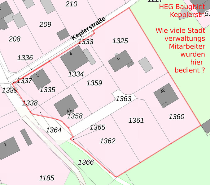 Ing. Goebel hat die Grundstücke der HEG Baugebiete sauber abgegrenzt.