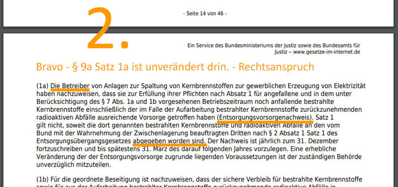 Wir können aber noch das minimal korrigierte Atomgesetz im Bundesanzeiger
