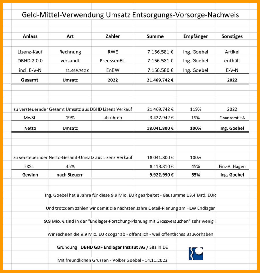 Und die Rechnung für den Entsorgungs-Vorsorge-Nachweis ist nur 20,4 Mio. EUR.