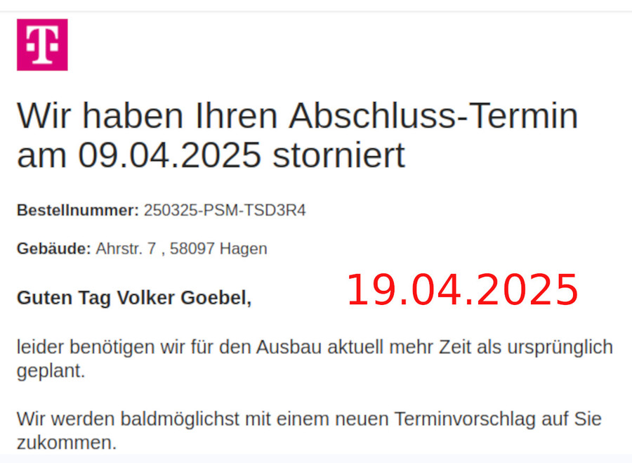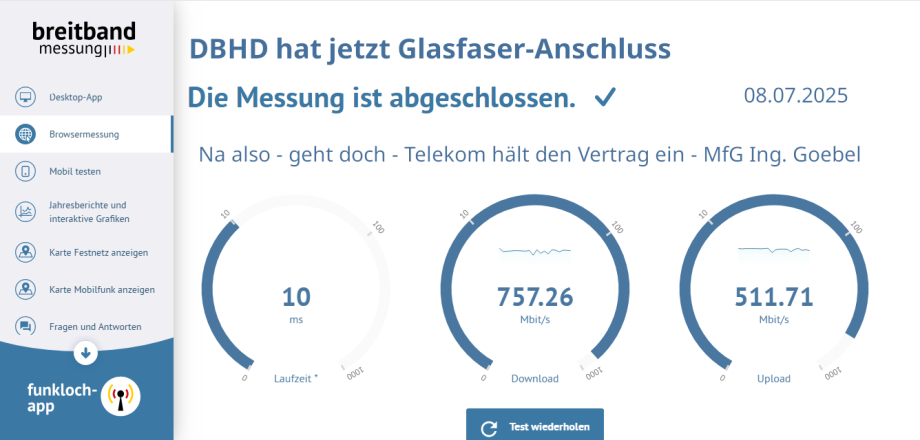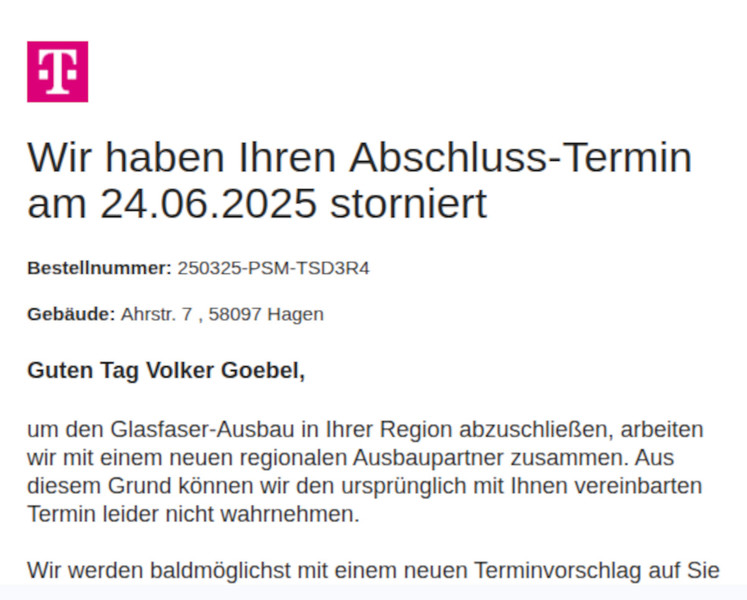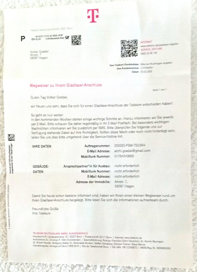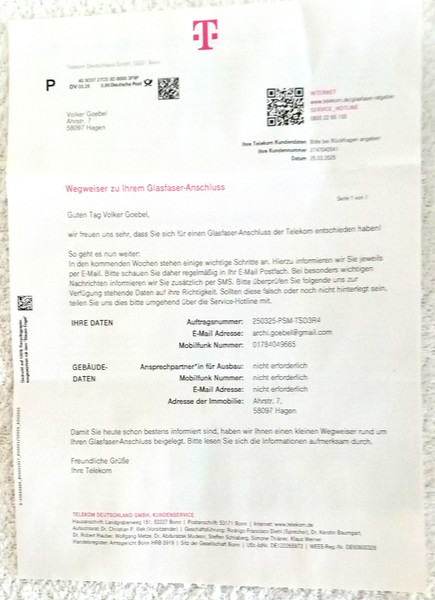 Glasfaser-Ausbau Telekom Hagen funktioniert - MfG Ing. Goebel