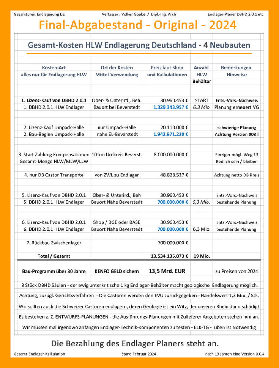 Thema Mengen-Gerüst für 4,75 Mio. Endlager-Gebinde für eine DBHD Lager-Säule